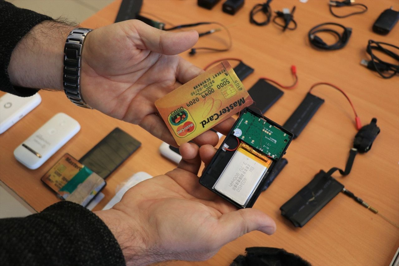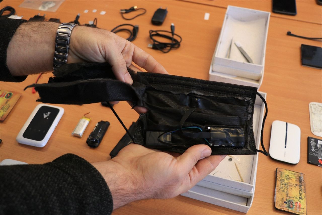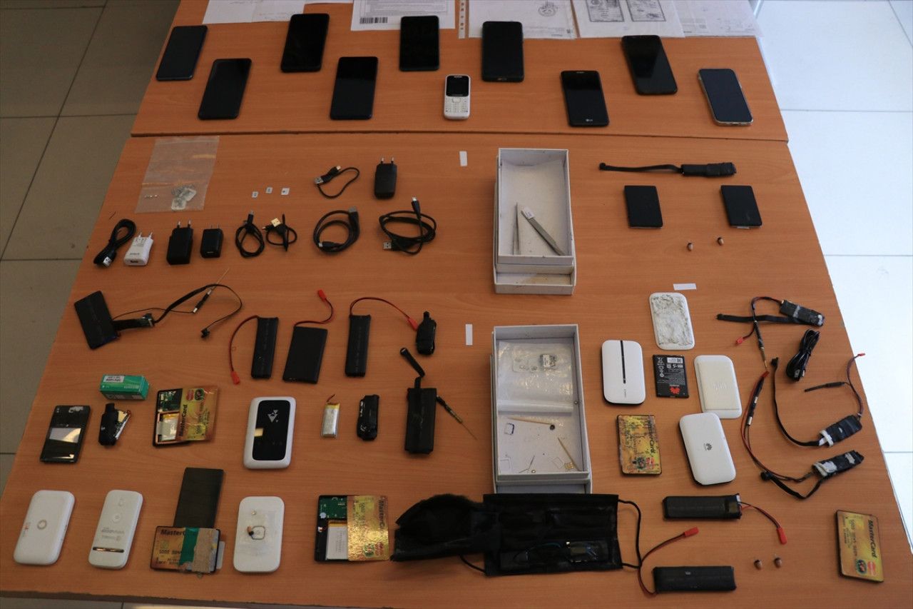 Aramalarda, ses ve görüntü aktarmak için telefon gibi kullanılan taşınabilir wifi cihazları, düğme görünümlü mikro kameralar, mikro kulaklıklar, veri aktarıcılar ve sahte sınav belgeleri ele geçirildi.