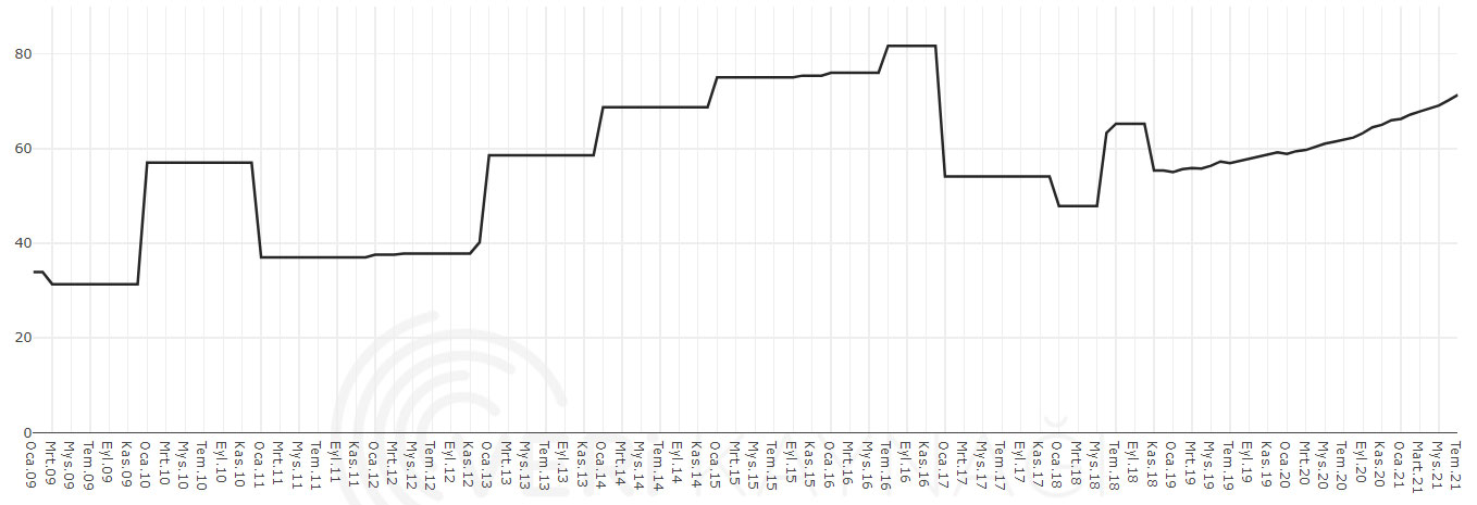 - Temmuz 2021 ortalama fiyat: 65,75 TL