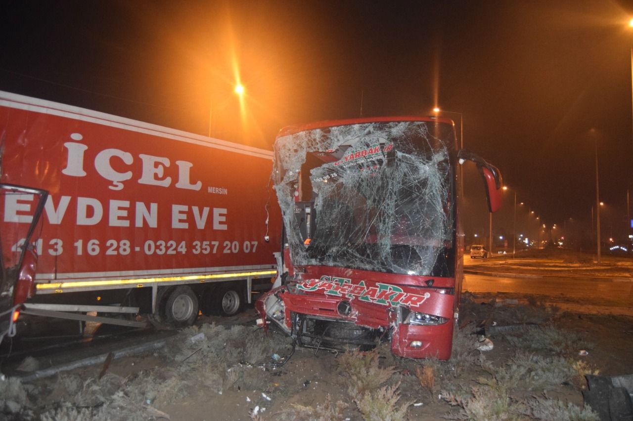 Alınan bilgilere göre, gece saat 02.20 sularında Hüseyin Şahin’in kullandığı 34DVT 88 plakalı yolcu otobüsü ile Cahit Erdoğmuş’un kullandığı 33 CUB 99 plakalı kamyon, Konya-Adana yolu Türkmen kavşağında çarpıştılar.