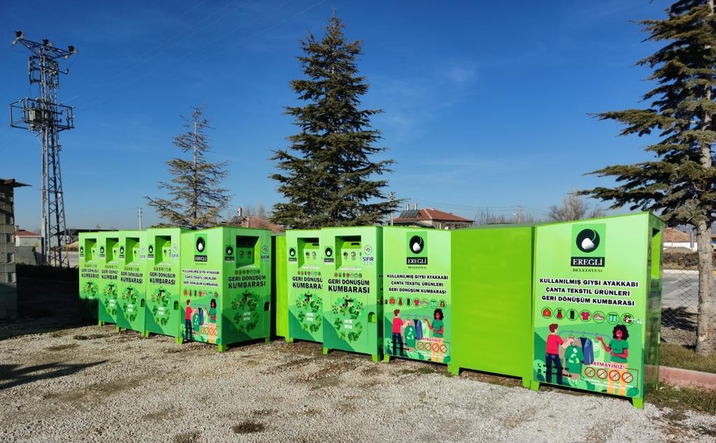 Konya Ereğli İlçe Belediyesi Temizlik İşleri Müdürlüğü tarafından, Sıfır Atık Projesi kapsamında ana güzergahlar ve toplu yaşam konutlarının bulunduğu alanlar başta olmak üzere 68 ayrı noktada Tekstil Atıkları Geri Dönüşüm Kumbaraları yerleştirildi.