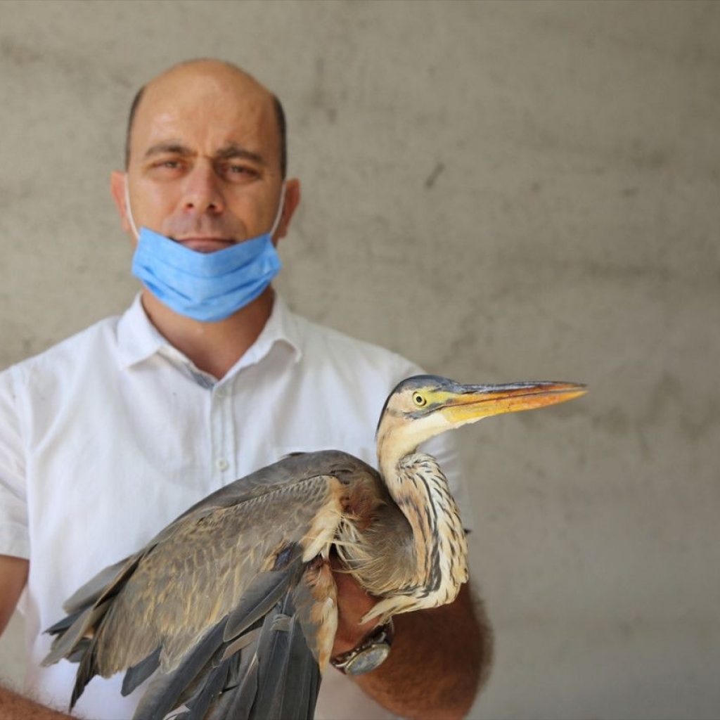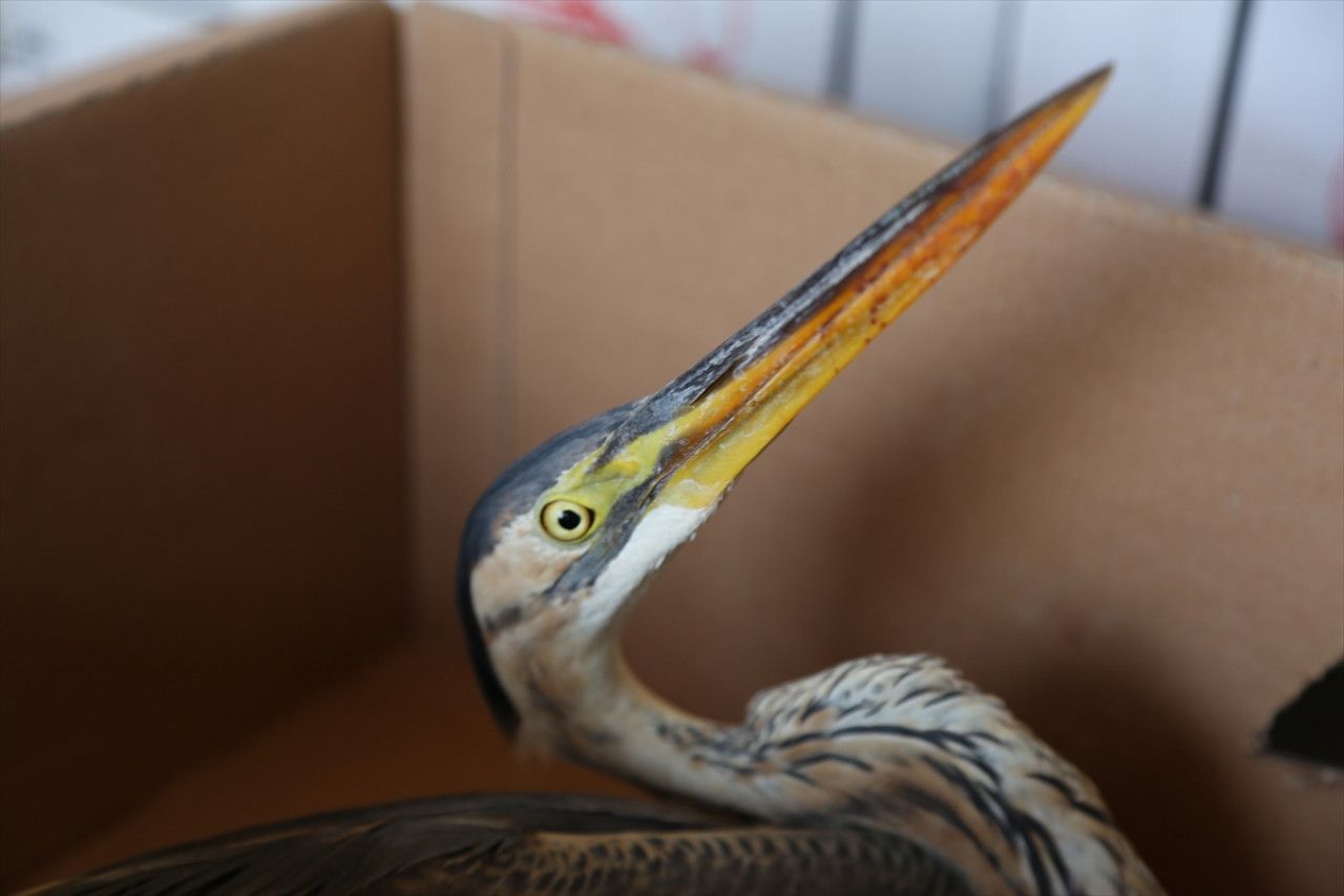 Kanadından yaralı olan ve uçamayan balaban kuşuna, su ve yiyecek verildi. Yaralı bulunan balaban kuşu, tedavi edildikten sonra doğaya bırakılacak.