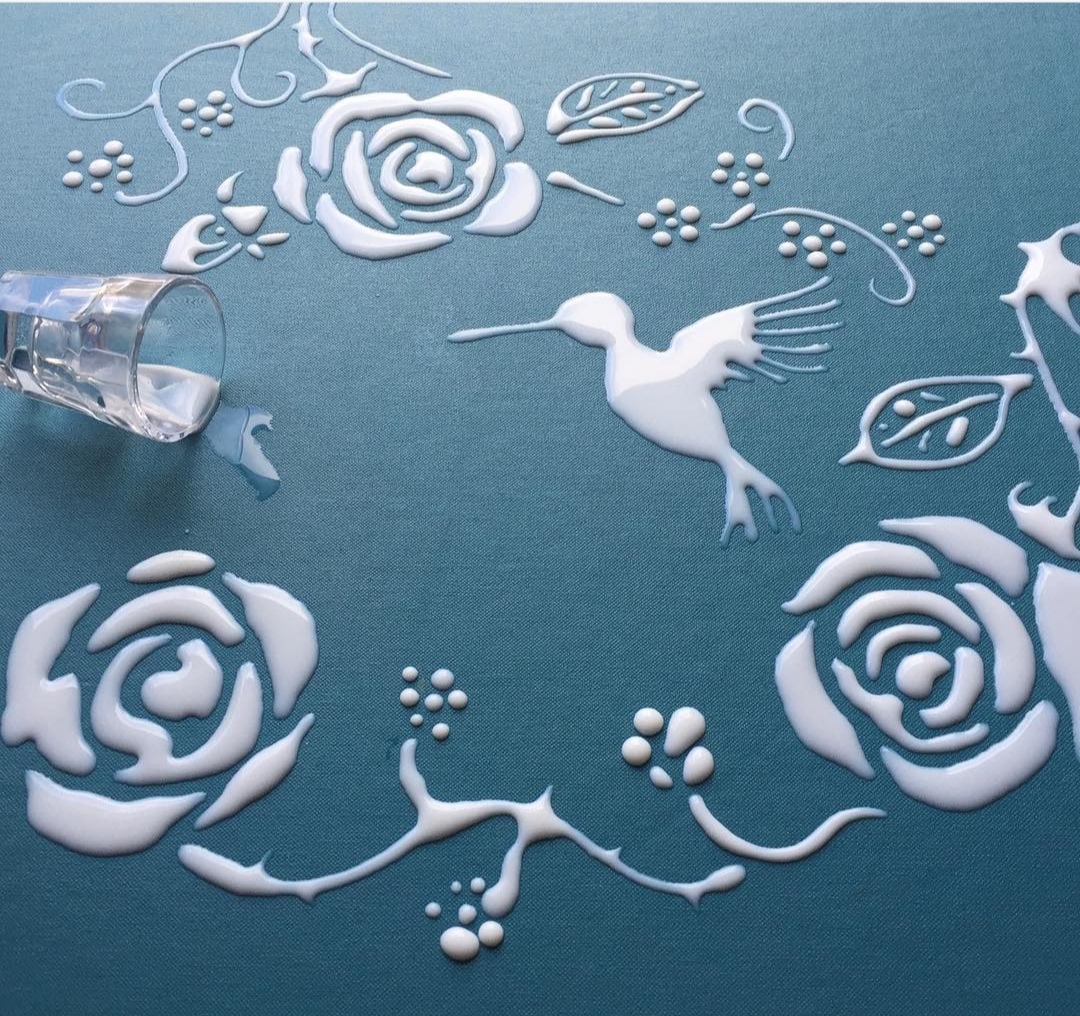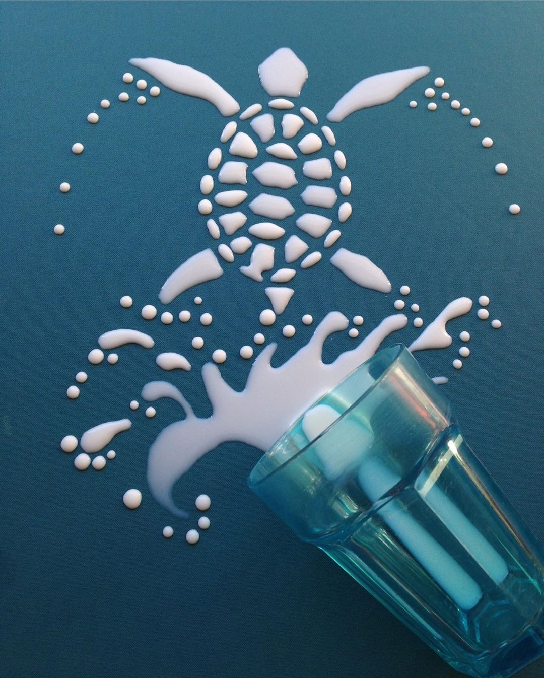Sıvı damlalarını kullanarak yaratıcı desenler yapan sanatçı Aravis Dolmenna, kendine özgü tekniğiyle göz dolduruyor. Su, kahve, süt gibi farklı sıvıları kullanan Dolmenna’nın tarzı oldukça sade: Düz renk bir fon ve doğal ışık.
