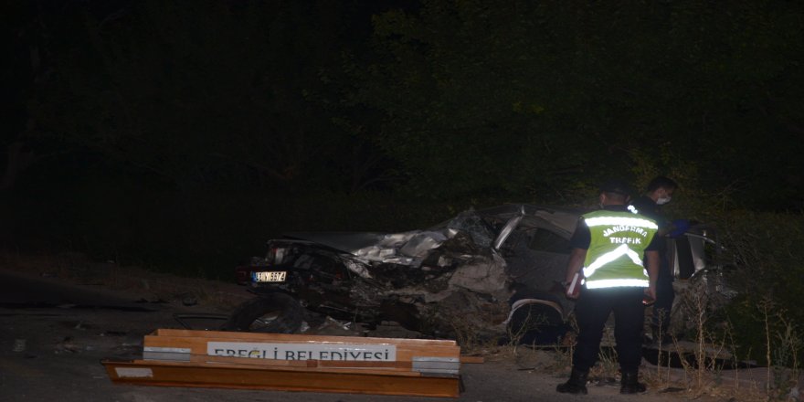 Konya Ereğli’de akşam saatlerinde meydana gelen feci kazada iki araç kafa kafaya çarpıştı, kazada emekli öğretmen olduğu bilinen Ali Alan yaşamını yitirdi.