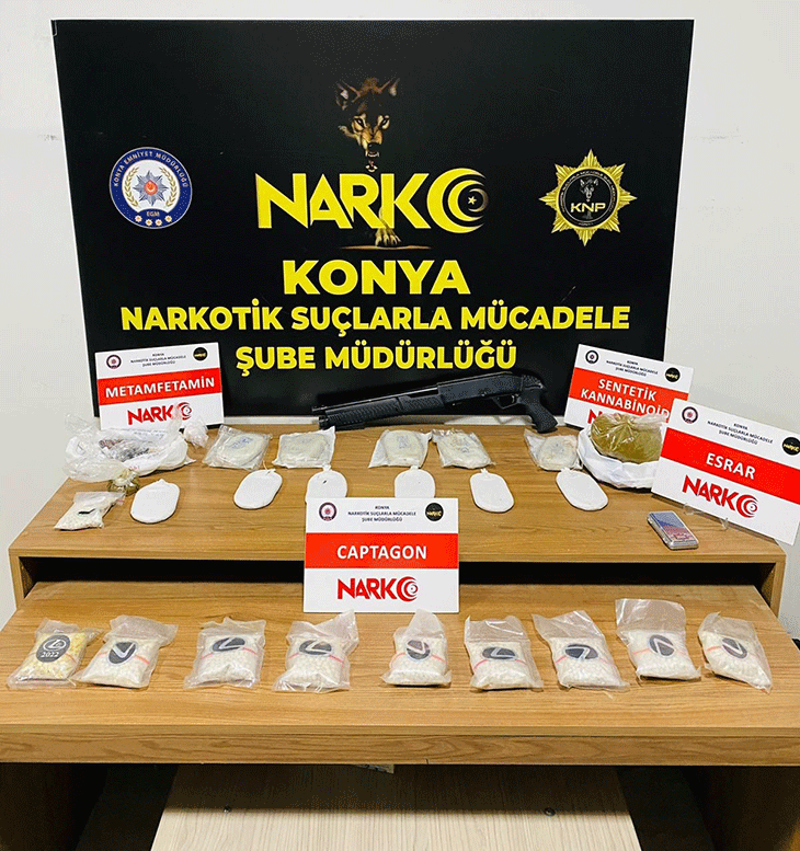 Konya polisi 1 buçuk milyon lira değerinde uyuşturucu madde ele geçirdi