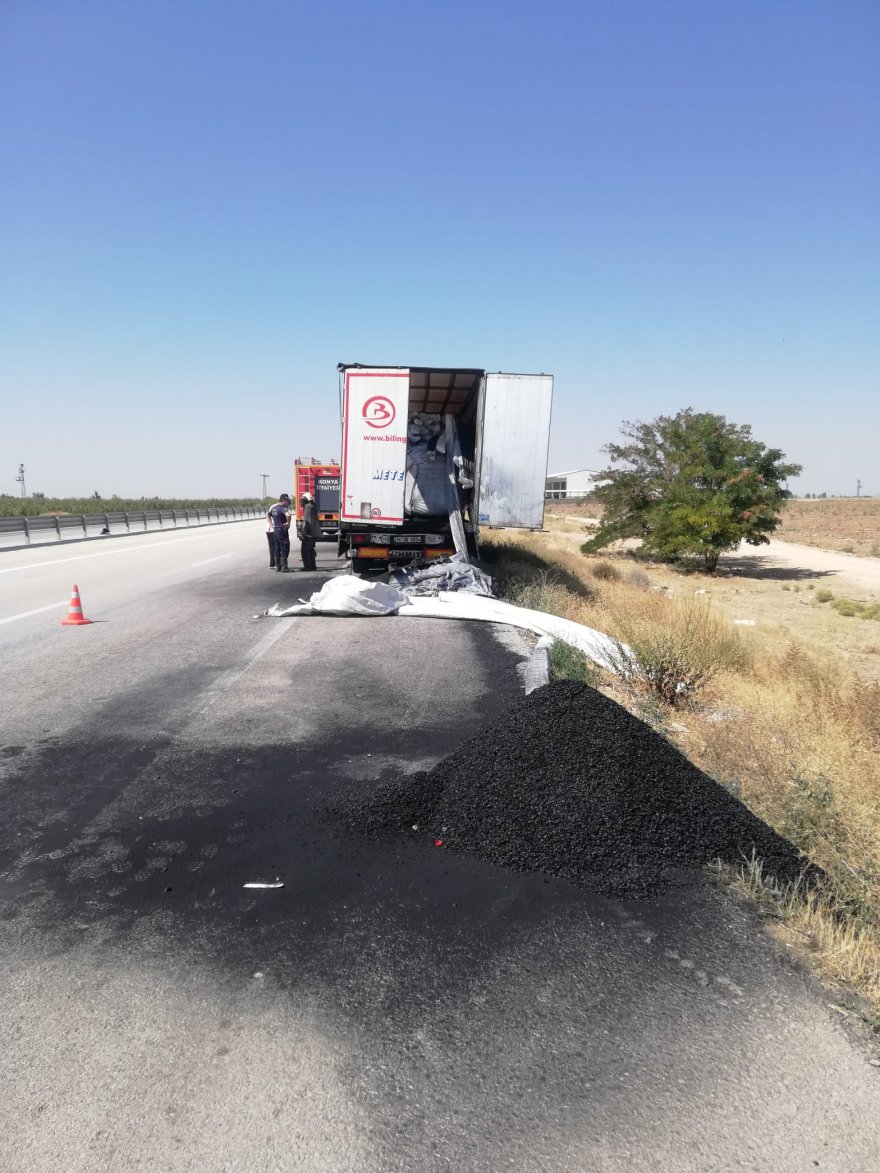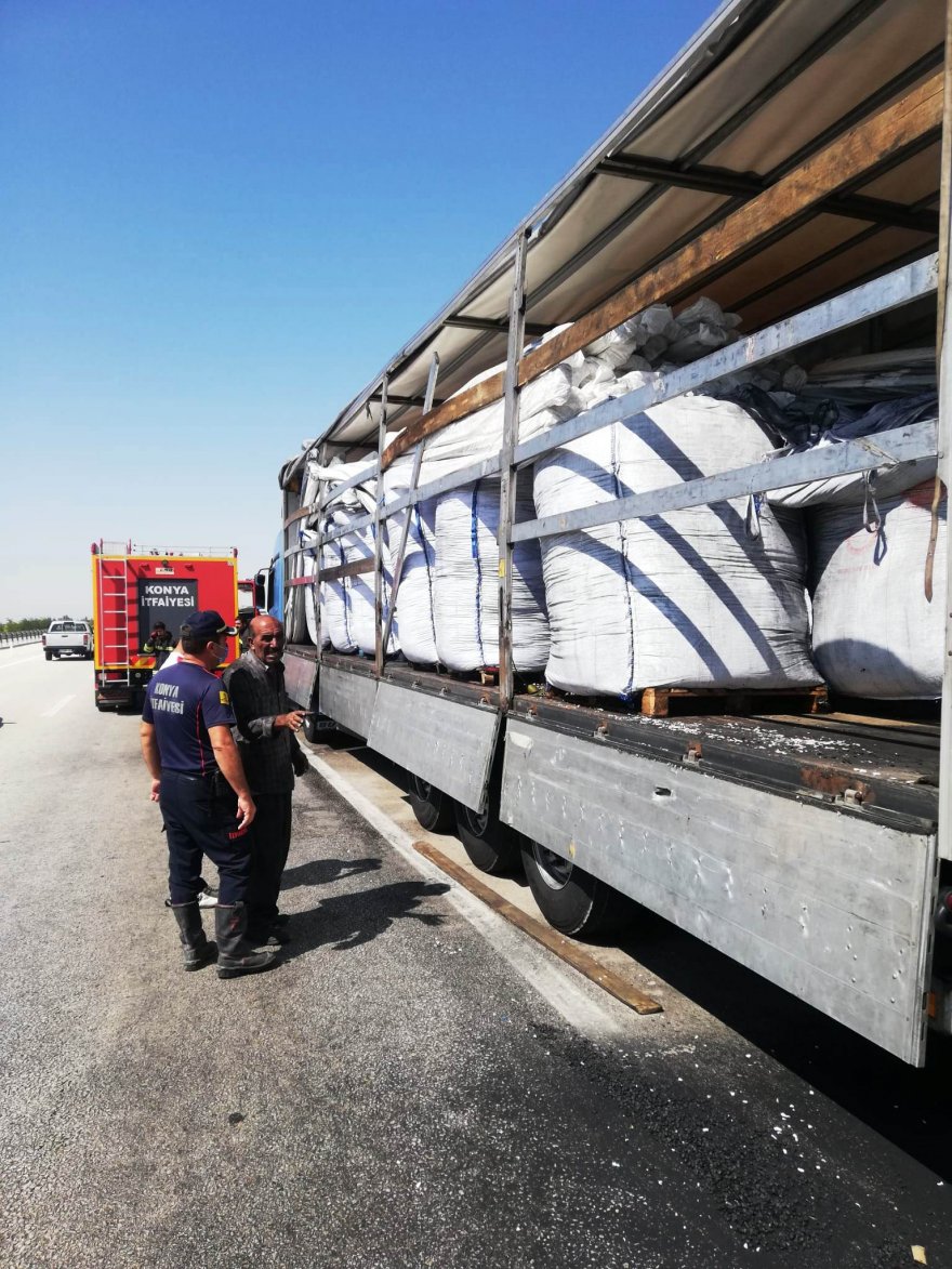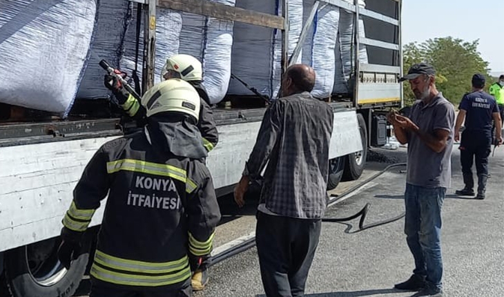 Konya’da tırın dorsesinde çıkan yangın söndürüldü