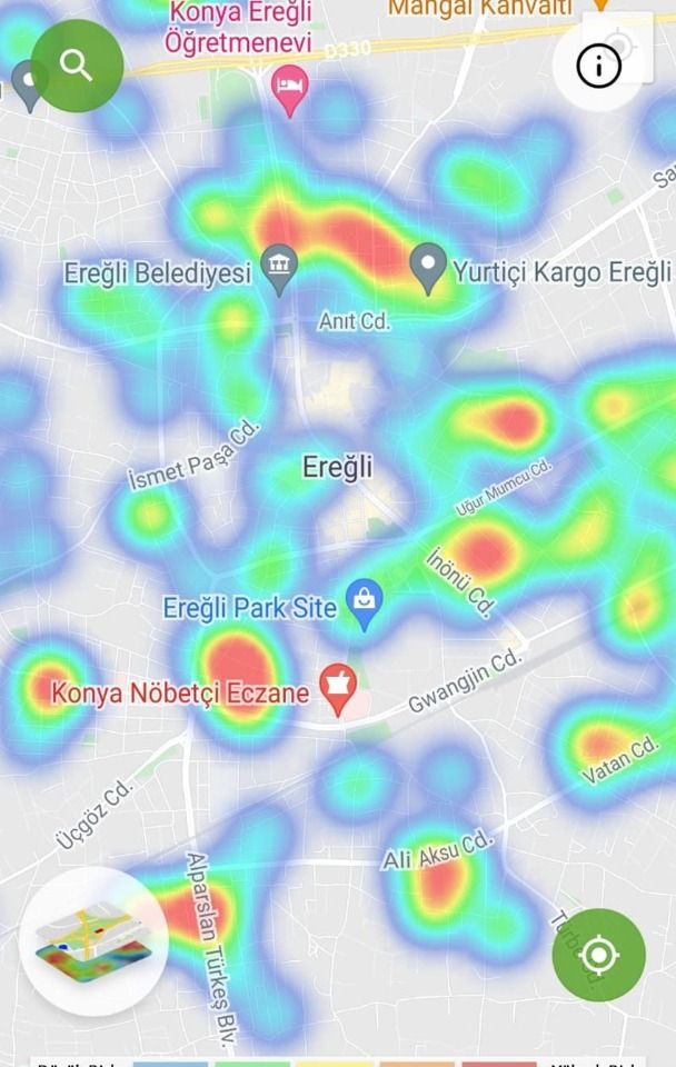 Ereğli’nin pek çok mahallesi artık düşük riskli bölge konumunda ve Ereğli’nin büyük çoğunluğu kırmızıdan maviye döndü.