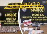 Konya polisi 1 buçuk milyon lira değerinde uyuşturucu madde ele geçirdi Konya’da polisin yaptığı 3 günlük çalışmada, piyasa değeri 1 buçuk milyon lira olan uyuşturucu...